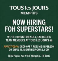 Tous les Jours Memphis is now hiring friendly, energetic Front-of-House (FOH) team members!